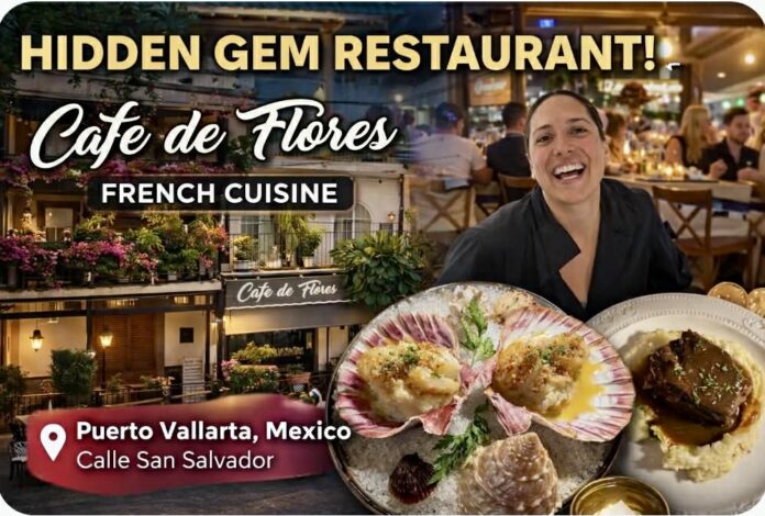 A Hidden French Gem in Puerto Vallarta | Café de Flores. Tucked away on Calle San Salvador, Café de Flores is truly one of Puerto Vallarta’s hidden gems. From the moment you walk in, you’re transported to Europe, warm lighting, elegant plating, and an intimate atmosphere that feels both refined and welcoming.