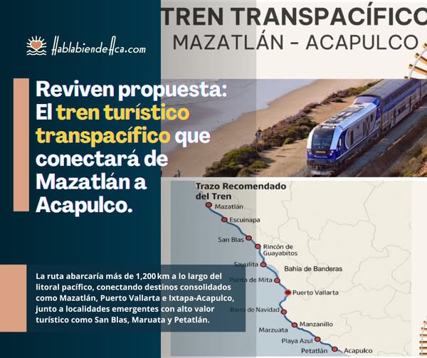 The third key component is the Mazatlán–Acapulco Pacific Tourist Train, which will serve as a backbone for regional connectivity and integration. The proposal goes beyond a means of transportation and is emerging as an instrument for territorial modernization, regional balance, and economic justice, with an impact on at least six states.