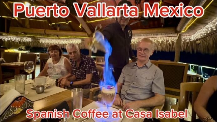 Flaming Spanish coffee. One of the best ways to end a perfect night in Puerto Vallarta. Spanish Coffee with a View at Casa Isabel, Puerto Vallarta.